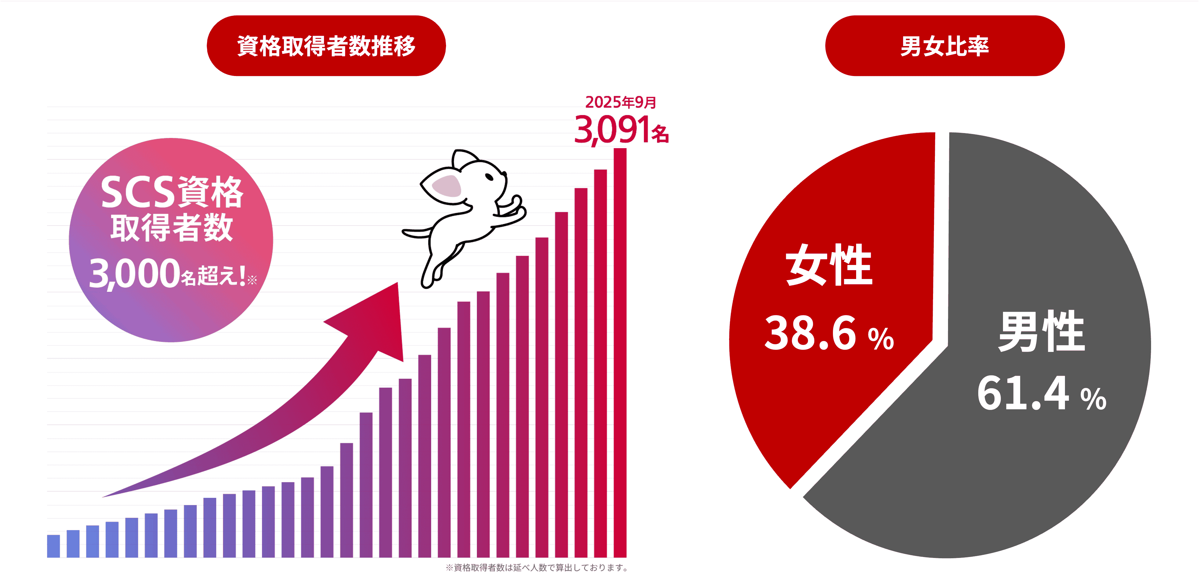 SCSは「SmartDB」に関するスキルや経験を証明し、DX推進に必要な人材であることを認定するプログラムです。2023年2月の開始以来導入企業は着実に増加しており、2025年9月にはSCS資格取得者が3,000名を突破しました。 (※2)