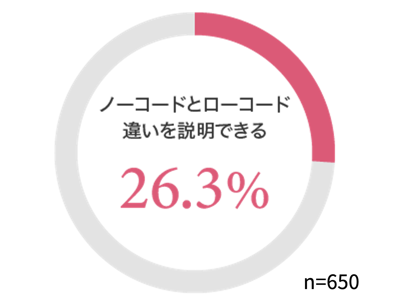 「業務部門が自らアプリを作った経験がある」と回答したのは34.3%でテクノロジーの進化により専門人材でなくても開発できる環境が整いつつあることが明らかになりました(グラフ4)。 一方「ノーコードとローコードの違いを説明できる」と回答したのは26.3%と、現場での活用が進む一方で、ノーコードとローコードの違いに対する理解が十分に浸透していない現状が浮き彫りになりました(グラフ5)。